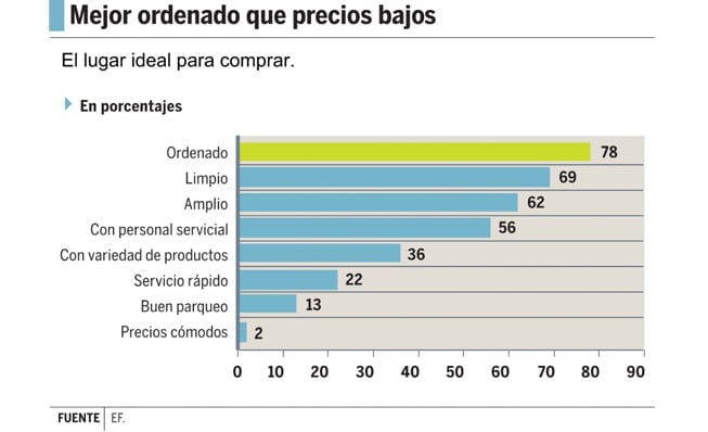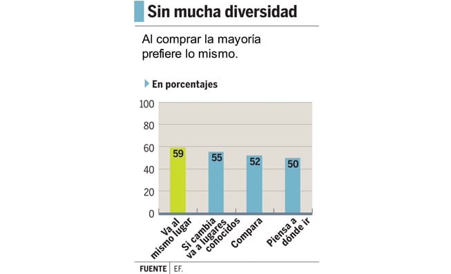 Prefiere en un 78% que un establecimiento ofrezca mucha variedad de precios y marcas, en un 69% prefiere comprar fuera de un centro comercial, un 66% no quiere que el personal lo busque para atenderlo y un 51% no quiere que le anuncien las ofertas por altoparlantes.