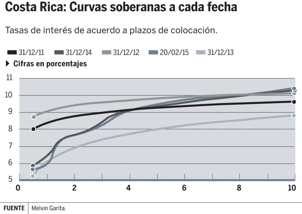 Cualquier observación sobre las implicaciones del déficit fiscal debería contemplar como mínimo una observación de la curva, situación que no dudé en señalarle al señor Madrigal: ¿cómo un empinamiento de la curva soberana ( spread 1año/5años) de 350 bp no dice nada al respecto? El spread es la diferencia entre dos tasas de intéres, para el caso de Costa Rica la actual diferencia entre pedir dinero a 1 año plazo (6,0%) y pedirlo a 5 años (9,5%) es de 3,50%, o sea, 350 bp. Lo que nos dice que las personas prefieren refugiarse en el corto plazo (1 año a 6%), o sea, ¡el mercado espera mayores tasas!