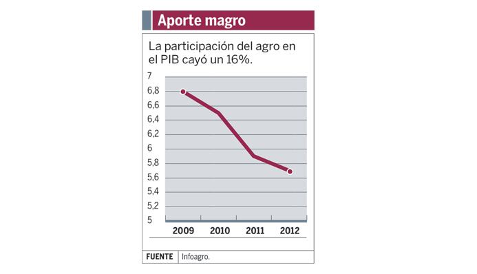 La participación del sector con respecto al Producto Interno Bruto (PIB) cayó un 3,38%, y ya suma un 16% desde el 2009.