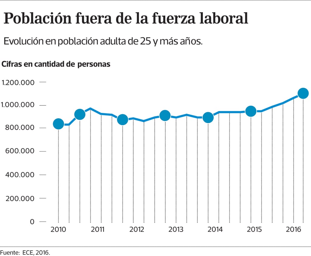 Para el segundo trimestre del 2016, el país reportaba 1.066.030 mujeres fuera de la fuerza de trabajo.