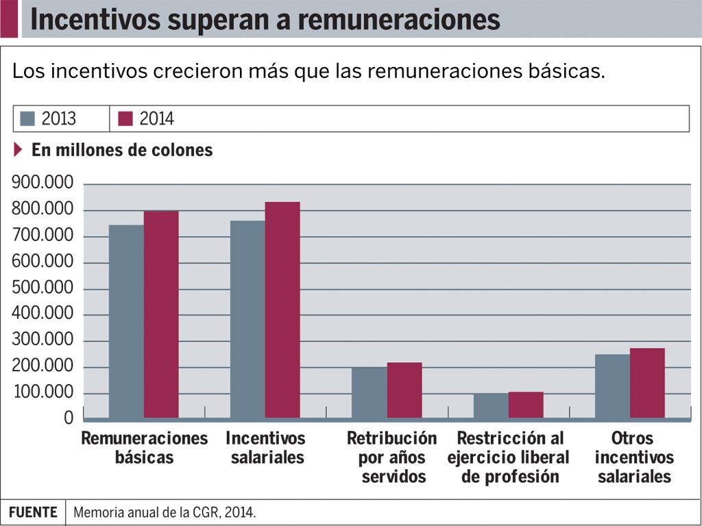 Un pesado fardo. Hacienda reconoce la carga que implican los regímenes de pensiones con cargo al presupuesto y los incentivos salariales. En el 2014 ¢149.130 millones fueron para pensiones y ¢800.000 millones para pluses salariales. ( ARCHIVO GN PARA EF)