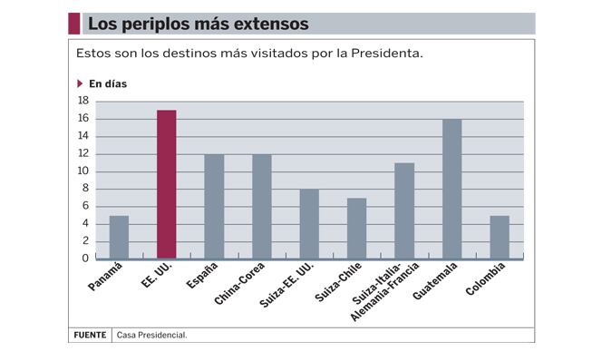De los 1.075 días que cumplió en el poder la presidenta Laura Chinchilla el 18 de abril de este año, 117 los pasó en el exterior.