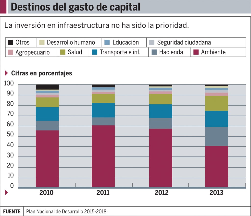 Empero, al analizar los destinos de la inversión de capital del Gobierno Central, es poco lo que se destina para la infraestructura pública.