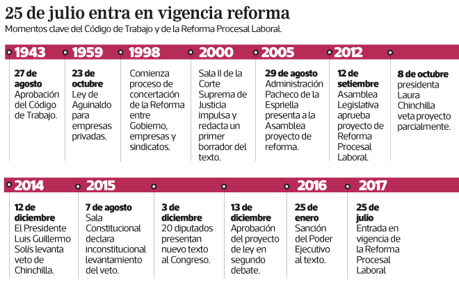 Esa es la fecha para la entrada en vigencia de la Reforma Procesal Laboral: un texto de transformaciones al Código de Trabajo (publicado por primera vez en 1943) que tardó casi 20 años en cristalizarse. La entrada en vigencia de esta reforma implica la derogatoria de 16 artículos, incorporación de otros 89 y la reforma de casi la mitad del documento original vigente hasta el momento.