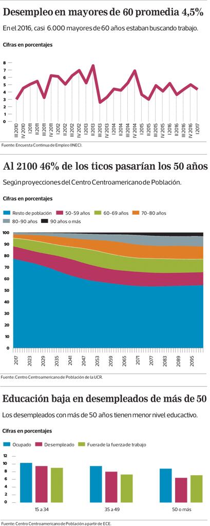Gilbert Brenes, investigador del centro, resalta que actualmente los adultos mayores desempleados suelen tener menor escolaridad. La mayoría de los que obtienen trabajo a esas edades, lo logran en servicios de baja calificación.