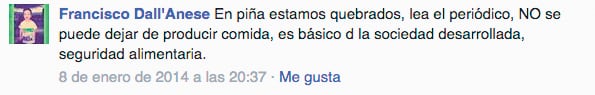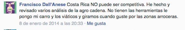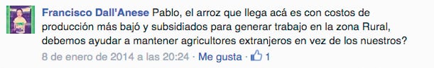 En el capítulo agrícola del plan del gobierno actual, se habla de protección al productor nacional, de soberanía alimentaria y demás. Luego cuando uno lee sus comentarios en Facebook, se ve que usted defiende, en cuanto al arroz, que lo que entra al país está subsidiado, llega con menos costos de producción, y usted mismo pregunta si debemos defender a los productores extranjeros en vez de los nacionales.