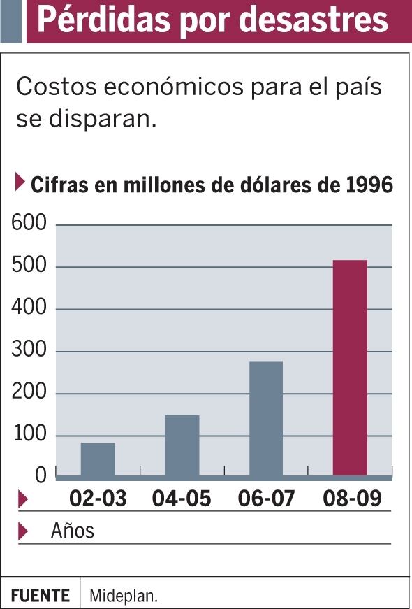 “Hay una tendencia al aumento, no de los eventos mayores, sino de los menores, concentrados y locales”, expresó Rosales. Es decir, la alcantarilla que se estropeó, las lluvias que se llevaron un puente, gota a gota van erosionando presupuestos de municipalidades: han crecido de 10 a 15% en los últimos tres años.