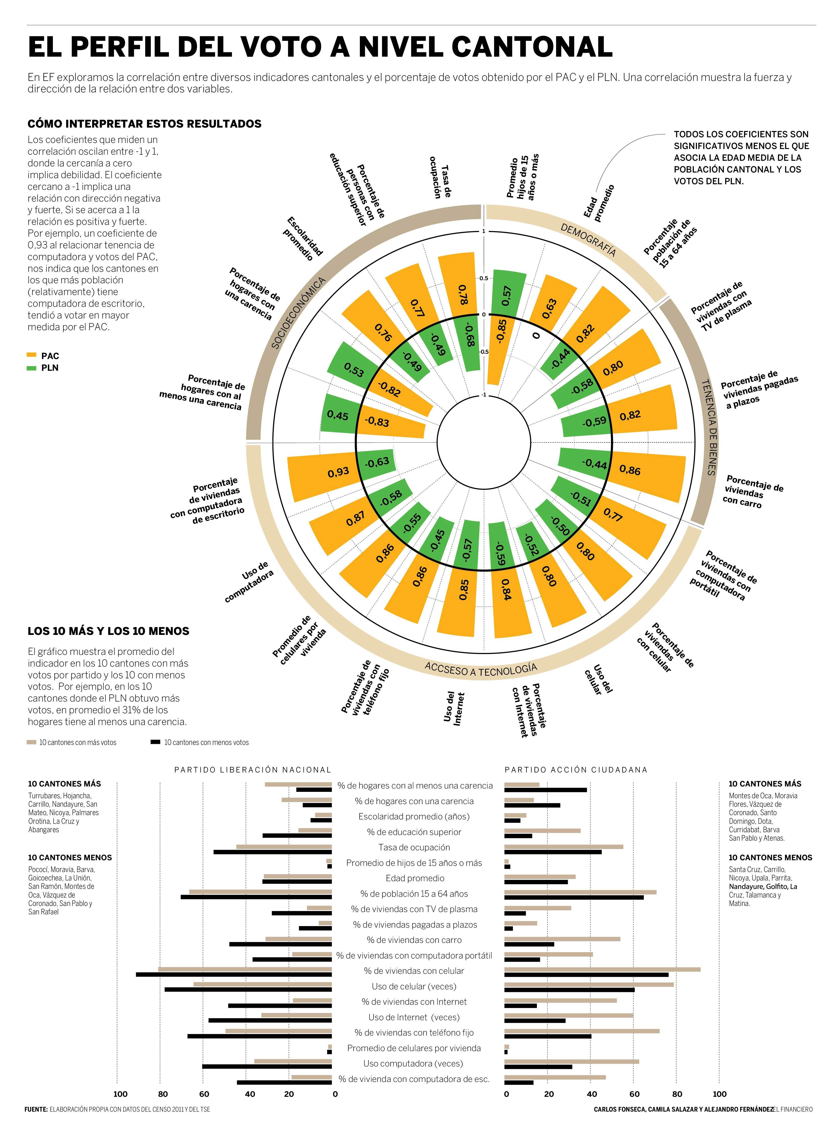 Así lo concluyó EF tras correlacionar 77 variables cantonales del censo del 2011 con el porcentaje de votos obtenido por ambos partidos en esas zonas.