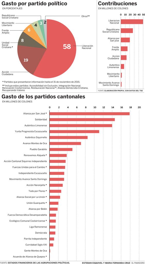 Hasta noviembre del 2015, el partido había gastado poco más de ¢17 millones.