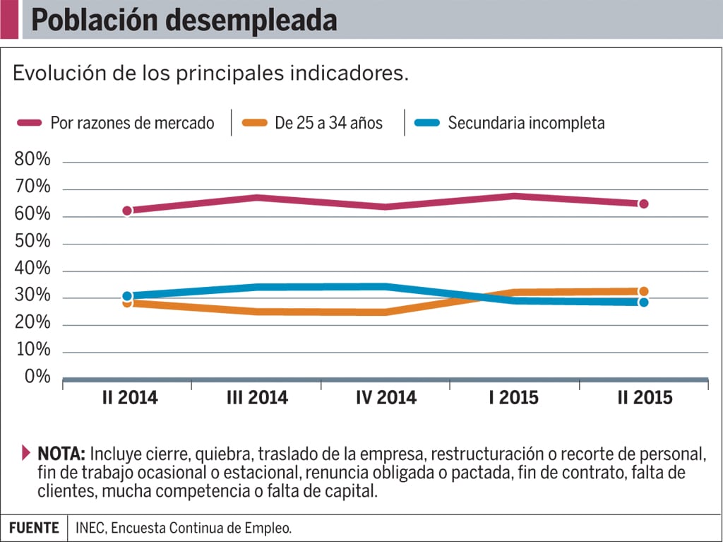 El Instituto divide a los desempleados por razones que los llevaron a alcanzar esa condición, por edad y por educación.