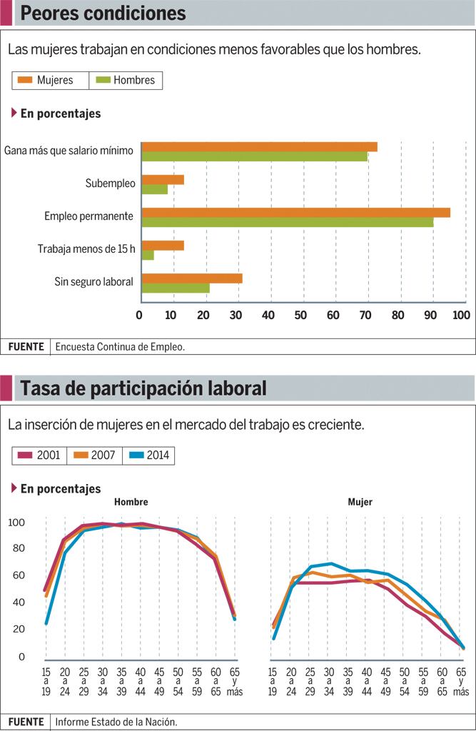 El último Informe del Estado de la Nación mostró que la tasa de participación de los hombres en el mercado de trabajo está estancada desde el 2001 mientras que la de la mujer viene en franco crecimiento.