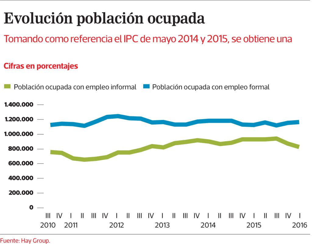 Datos del propio INEC subrayan que para el primer trimestre del 2016, la población ocupada era 1.992.741 personas, lo que significa una baja de 34.777 personas en comparación con el mismo periodo de un año antes.