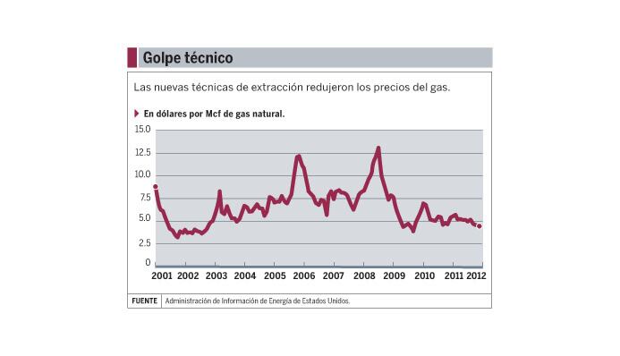 Aunque sus posibles efectos en los mantos acuíferos despertaron la preocupación de ambientalistas en Estados Unidos, el fracking provocó que el precio del gas en ese país cayera entre 2008 y 2011 de $8,85 a $3,47 por millón de BTU –medida equivalente a la cantidad de energía necesaria para calentar 0,4 kilogramos de agua–.