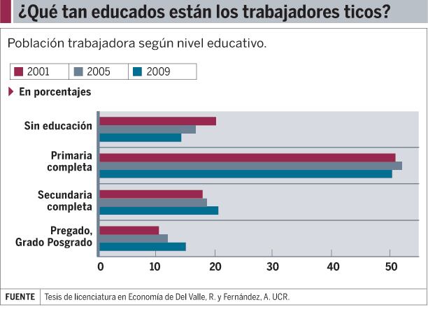 ¿Es cierto que Costa Rica tiene una población trabajadora altamente calificada? Tal generalización puede ser cierta al comparar los indicadores con otras naciones de América Latina; sin embargo, más de dos terceras partes de los trabajadores del país pertenecen al grupo de trabajadores no calificados.