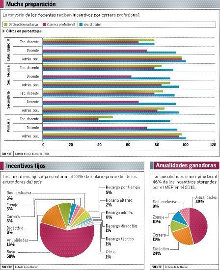 Esos incentivos que no estimulan a nadie, correspondieron al 41% de las cargas de remuneraciones en el 2013. El restante 59% correspondió al salario base de los profesores.