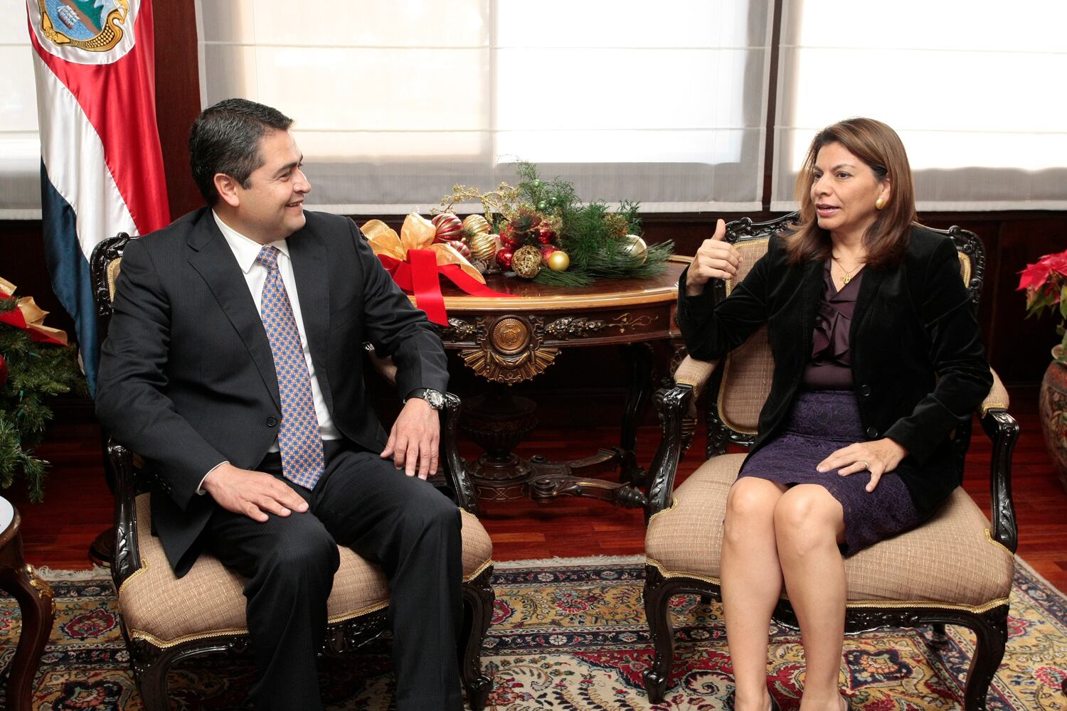 La presidenta de la República, Laura Chinchilla, se reunió con el presidente electo de Honduras, Juan Orlando Hernández. La cita inició minutos antes de las 2:20 p. m. de este miércoles.
