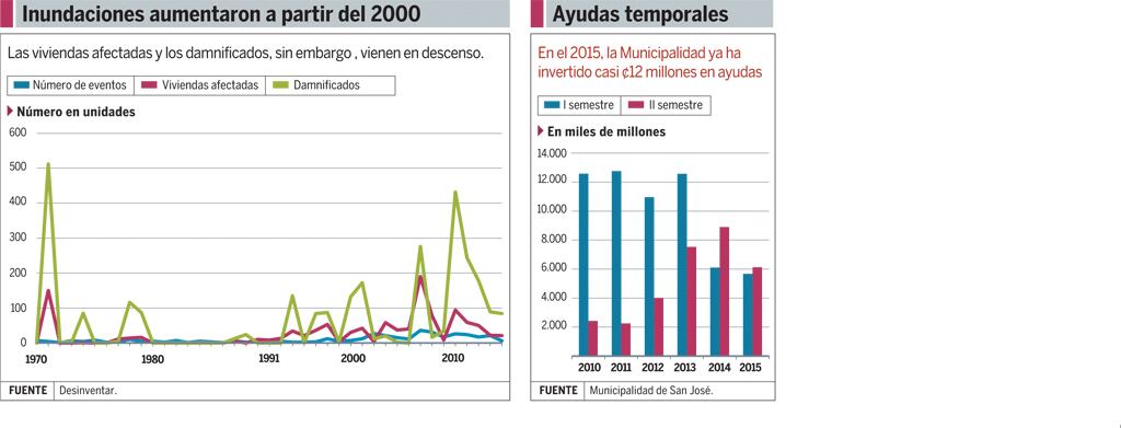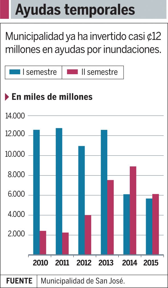 En los últimos cinco años la municipalidad invirtió poco más de ¢18 millones en promedio, por año, para dar ayudas temporales a los afectados por inundaciones.