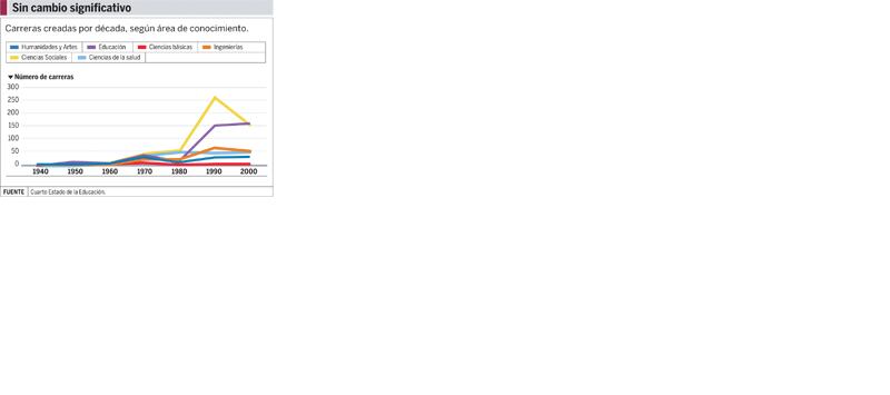 Sin embargo, esta limitación no deja de revelar que no se están explorando nuevas áreas de conocimiento entre las carreras abiertas recientemente, concluye el informe.