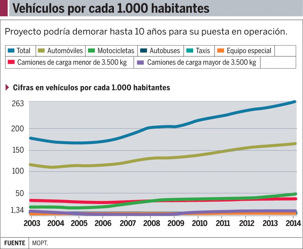 En 2014, el país alcanzó una flota vehicular de 1,25 millones de vehículos; un aumento sostenido de la tasa del 47,8% desde el 2003, según datos del Ministerio de Obras Públicas y Transportes (MOPT).