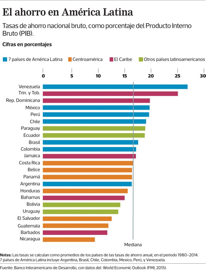 La tasa media de ahorro nacional del subcontinente es de 17,5% del Producto Interno Bruto (PIB), según el Banco Interamericano de Desarrollo (BID).