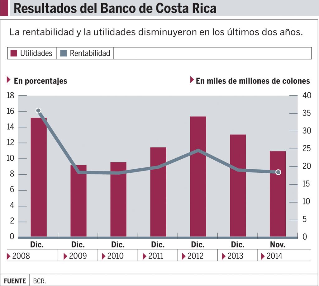 En participación de mercado, el BCR se adueña del 19,7% de la cartera de préstamos, mientras el Nacional captura el 37,4%. Además, el primero reportó utilidades por ¢24.407 millones al cierre de noviembre pasado, con una baja en los últimos dos años.