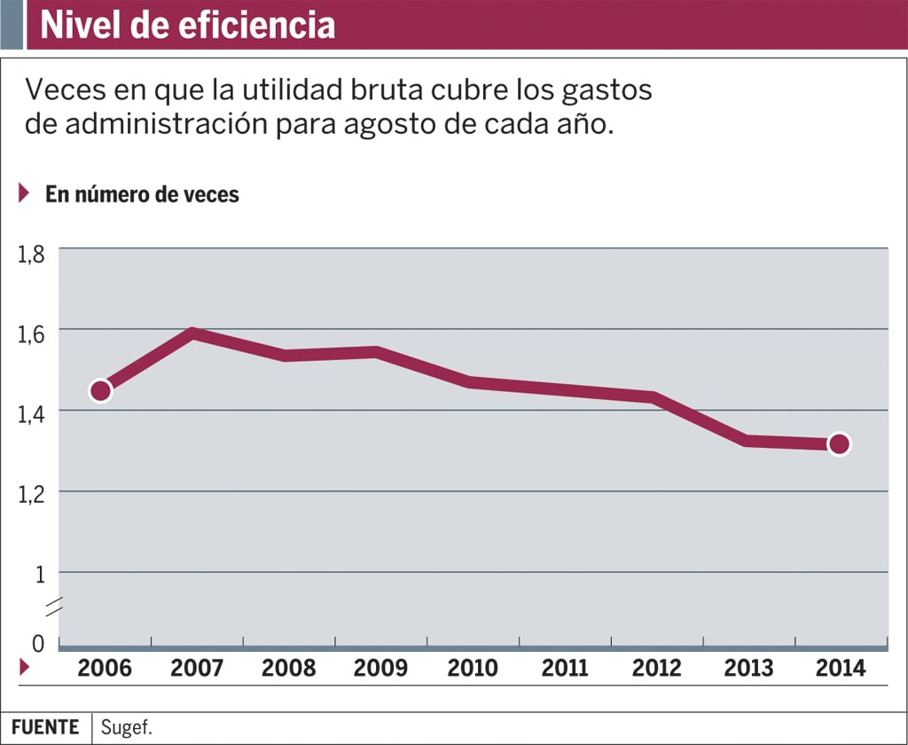Por su parte, Fernando Naranjo explicó que el descenso de ese porcentaje obedeció al incremento en créditos durante el 2013, los cuales pronto empezarán a dar mayores ingresos que, a su vez, alimentarán las utilidades a partir de este año.