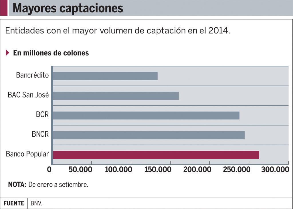 El Banco Nacional fue el segundo con más crecimiento en captaciones en el 2014, con ¢244.308 millones.