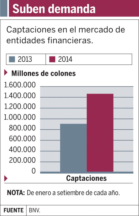 Las entidades del sector financiero salieron en busca de más dinero en el mercado de valores costarricense este año. Su demanda aumentó en un 61% al compararla con el año pasado.