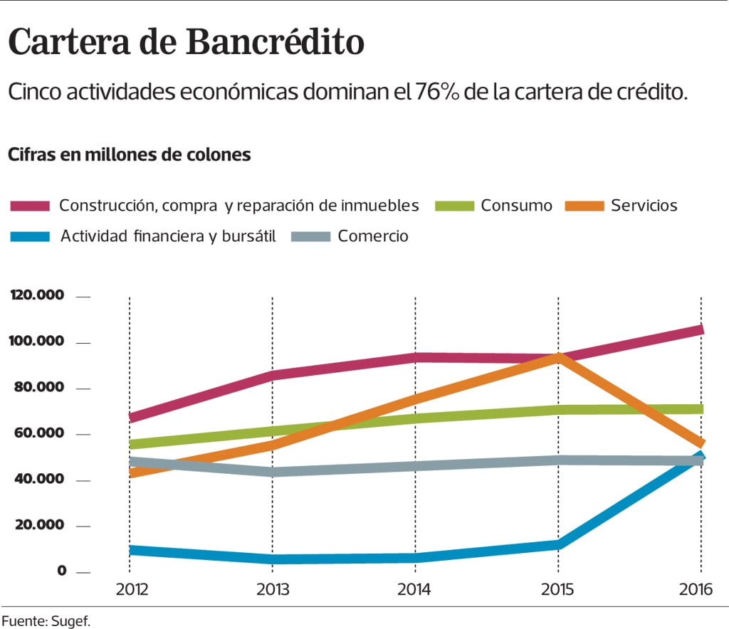 En la acera de las pymes, Bancrédito manejó por cuatro años los fondos del Fideicomiso Nacional para el Desarrollo (Finade), el corazón del Sistema de Banca para el Desarrollo (SBD), pero dejó esa labor en 2012 y en su lugar llegó el Banco de Costa Rica (BCR).