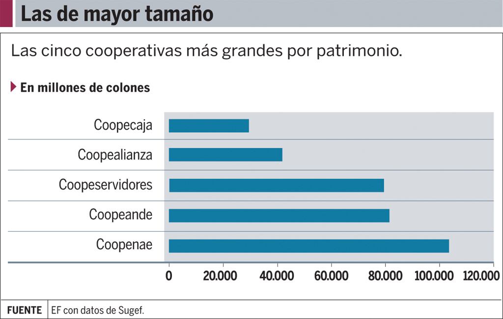 De acuerdo con la Superintedencia General de Entidades Financieras, a mayo pasado, había 26 cooperativas que les reportaron sus resultados. De estas, solo ocho superan los ¢10.000 millones en patrimonio.