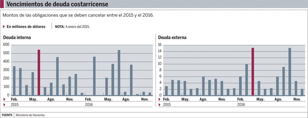 Lo anterior implica que probablemente, a partir de julio del 2016, el Gobierno ya no tenga más opción que financiar todos sus gastos en el mercado interno en caso de que no implemente otras medidas que aumenten sus ingresos o bajen, precisamente, esos egresos.