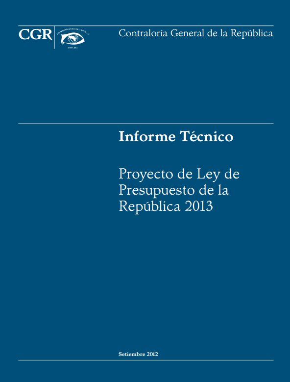 El informe técnico del presupuesto, elaborado por la Contraloría, es un insumo que pretende aportar a la discusión sobre el gasto del Gobierno Central. El Presupuesto Nacional de la República 2013 debe ser aprobado por la Asamblea Legislativa antes del 30 de noviembre.
