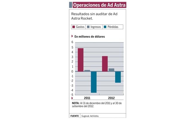 No obstante, y de manera paralela, Ad Astra ha encontrado la oportunidad de obtener algunos ingresos adicionales con convenios hechos con otras instituciones, con las cuales lleva a cabo investigaciones, que se consolidaron a mitad de este año mediante acuerdos.