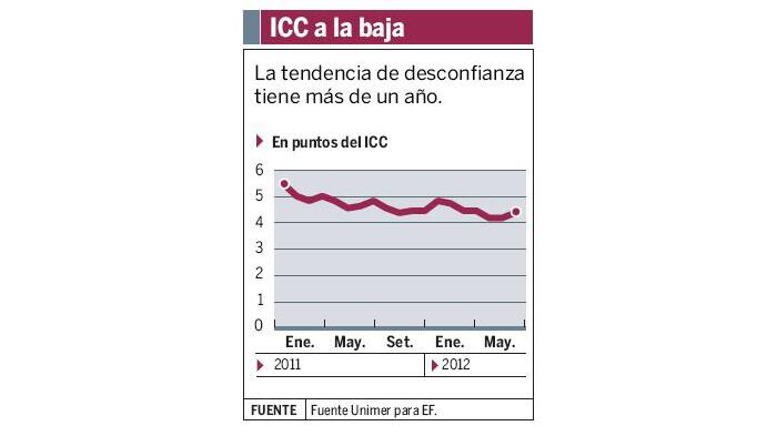 Solo en junio, el ICC general fue de 4,3 puntos, apenas superior de lo que marcó un mes antes que fue de 4,1 de un máximo de 10. A pesar de ese repunte, la tendencia es decreciente en poco más de un año.