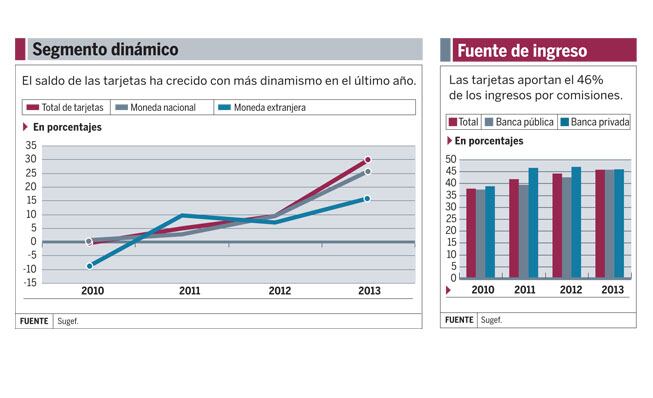 Y ese dinamismo también se refleja en los ingresos por comisiones que cobran los bancos por el uso del plástico, pues representa el 46% de todos sus ingresos.