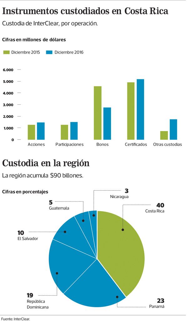 En Costa Rica, el SAC registra las emisiones públicas por $22,8 billones, mientras InterClear custodia las privadas, que ascienden a $12,9 billones.