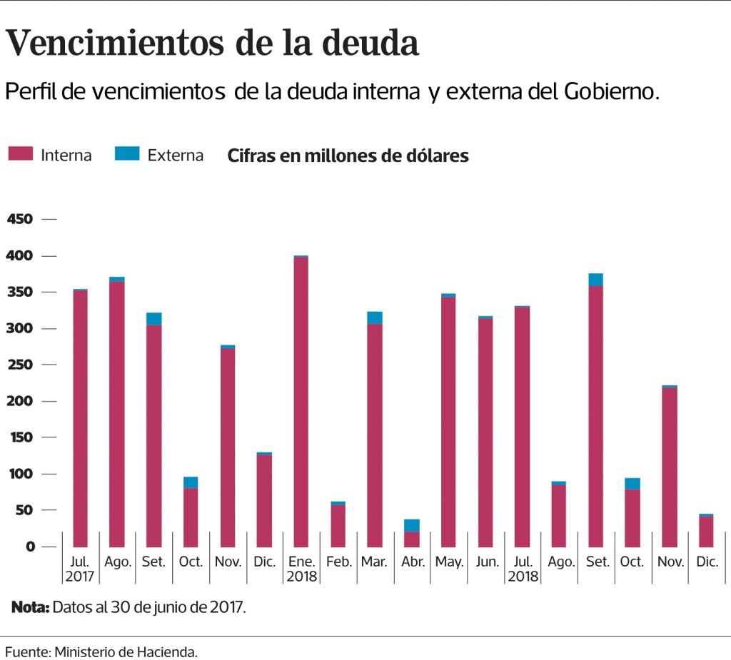 En lo que le resta de mandato (agosto a mayo del 2018), la Administración Solís Rivera tendrá que afrontar el vencimiento de $2.376,4 millones de deuda (interna y externa).