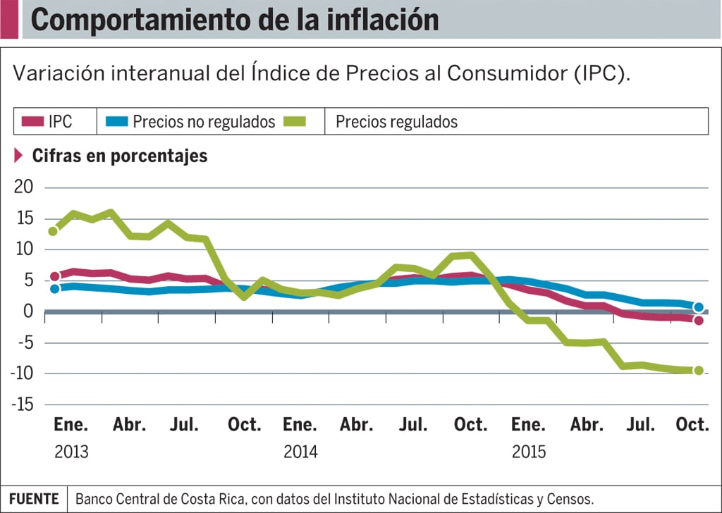 La inflación, que este año ha tenido un comportamiento atípico, seguirá una tendencia similar en el 2016, aunque dejaría atrás las cifras negativas que ha presentado en los últimos cinco meses.