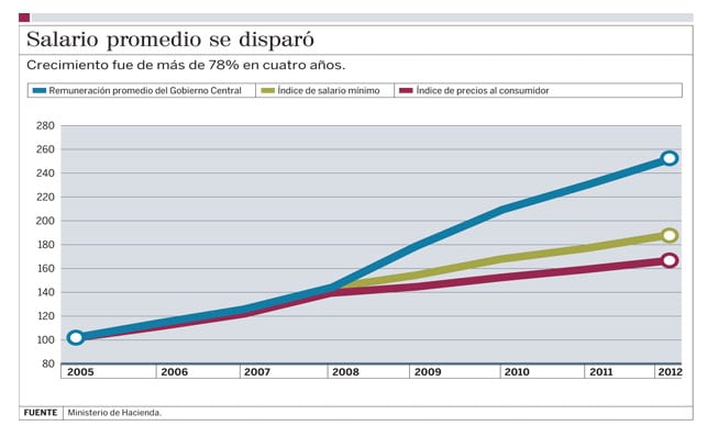 El problema se agravó del 2008 a la fecha. En cuatro años, el incremento en el índice de salario promedio del Gobierno Central fue de un 78,6%, y en el resto del sector público (universidades e instituciones autónomas) el aumento se pudo haber duplicado.