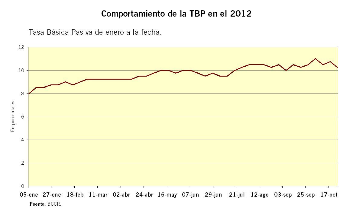 Hace un año, en octubre del 2011, el nivel de la TBP se ubicaba en 8%.