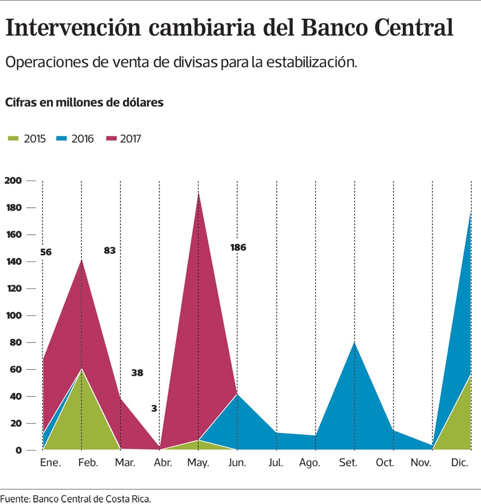 La venta de divisas para la estabilización monetaria alcanzó los $365 millones al 25 de mayo. En casi cinco meses, el BCCR superó lo que negoció en el 2016.