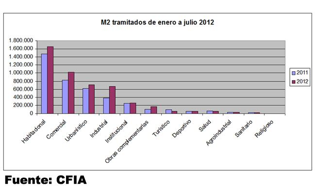 Este sector representa el 14% de todas las obras del país. Al sumar todos los sectores, durante los primeros siete meses del 2012 se tramitaron 4.718.931 metros cuadrados, un 20% más que el mismo lapso del 2011.