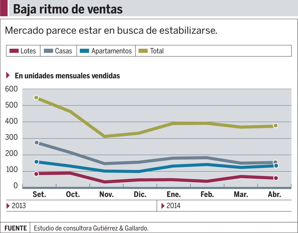 La situación no es para menos. Un estudio de la consultora Gutiérrez & Gallardo detectó que las ventas conjuntas de 226 proyectos –ubicados en la Gran Área Metropolitana (GAM)– han disminuido en un 30% entre setiembre del 2013 y abril pasado.