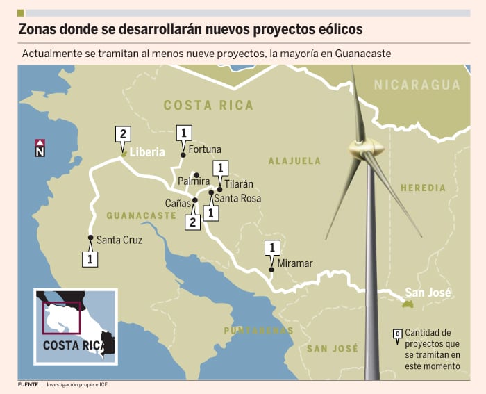 Lo destacable de este nuevo grupo es que muchos de ellos estarían ubicados en zonas emergentes para la generación eólica, como Santa Cruz y Cañas, ambas de Guanacaste, y Miramar de Puntarenas.