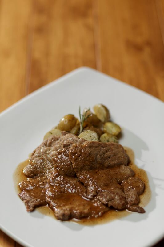 Scalopini a la Marsala . Con papas al romero y una reducción de Marsala. Bien, pero no estaba a la altura de otros platos del menú, ni en el sabor ni en la apariencia.