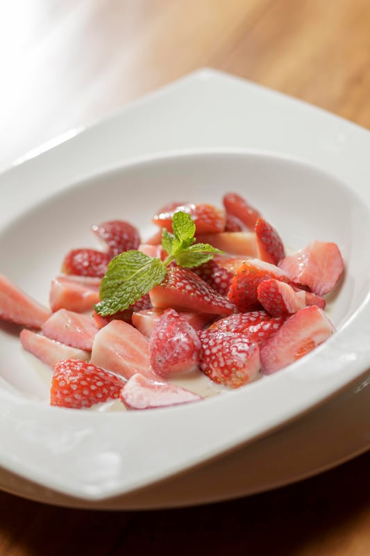 Fresas al Grand Marnier. Nada del otro mundo. Cumplidor. Se siente más la leche condensada que el aroma del licor.