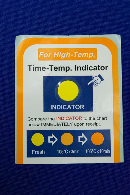 Otra de las etiquetas que fabrica Etipres es la que cambia de color mediante una reacción química si el producto perdió en algún momento la cadena de frío, comprometiendo así su calidad.