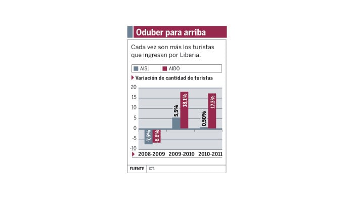 Los números lo respaldan, pues, aunque la mayoría del turismo extranjero sigue entrando al país por el Juan Santamaría, su crecimiento en comparación con el de Liberia se encuentra a la baja.