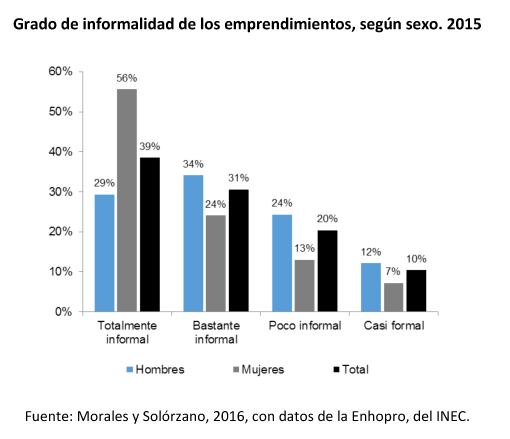 Sin embargo, los emprendimientos “totalmente informal” eran encabezados más por mujeres (56% ) que por hombres (29%), según el Vigésimo Segundo Informe del Estado de La Nación.