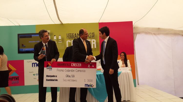 El año anterior la empresa Cifsa S.A. obtuvo el Galardón Pyme en el área de comercio. El presidente Luis Guillermo Solís, junto con el ministro de Economía, Welmer Ramos, le entregaron el premio al gerente general Andrés Flores. (Joanna Nelson para EF)